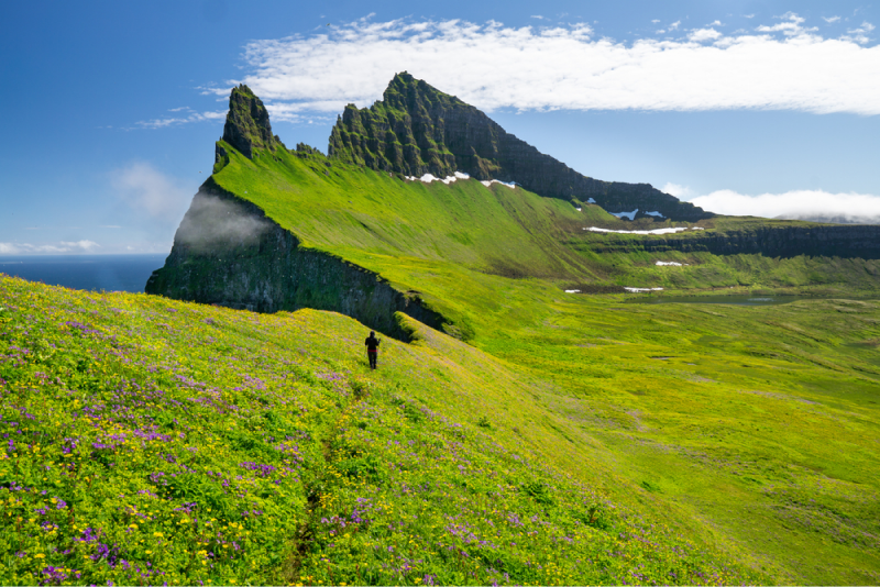 Si vous recherchez une randonnée à la fois éloignée et accessible, alors Víknaslóðir est votre sentier. Partant de la ville isolée de Borgarfjörður eystri, dans les fjords de l’extrême est de l’Islande, ce sentier traverse une zone inhabitée pendant trois jours, ou quatre si vous choisissez de terminer dans la ville de Seyðisfjörður, sans doute l’un des plus beaux villages d’Islande. La région est incroyablement belle et le sentier tranquille, sans compter que les habitants sont réputés pour leur convivialité et leur bonne humeur, dans leurs magnifiques petits villages.